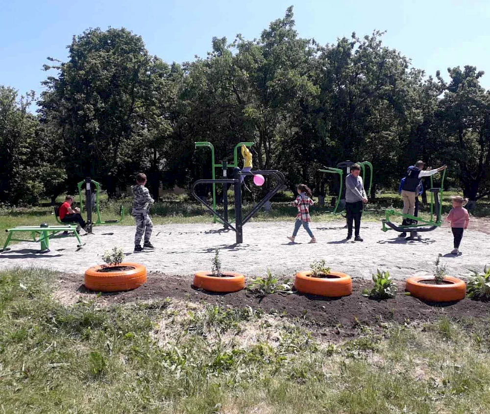А обустройством площадки занялись наши работники админздания, соцработники, рабочие по благоустройству, заведующая и техработник клуба, наши ребята-помощники, а также наша жительница Галина Янголь, которая предоставила и посадила цветы возле площадки, говорится в сообщении.