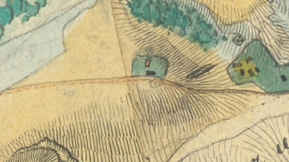 Единственное, что так или иначе очевидно и что коррелирует с ситуацией это дом и дорога на горе на карте 1837 года. Но как их можно соотнести с остатками рва ВДОЛЬ горы - вопрос.