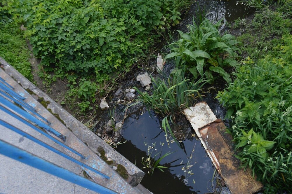 В Загребельском пруду ситуация другая: водоем заилен и покрыт водорослями, которые, вероятно, и являются источником запаха. Зафиксирован также белый налет и шумовка. Несмотря на это, биоразнообразие сохраняется - на месте заметили лягушек и ужа.