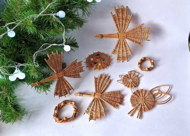 Новогодние украшения на елку, шкатулки, конфетницы, фруктовницы, вазы, маленькие корзинки из лозы уже подготовила Марина Зуева.