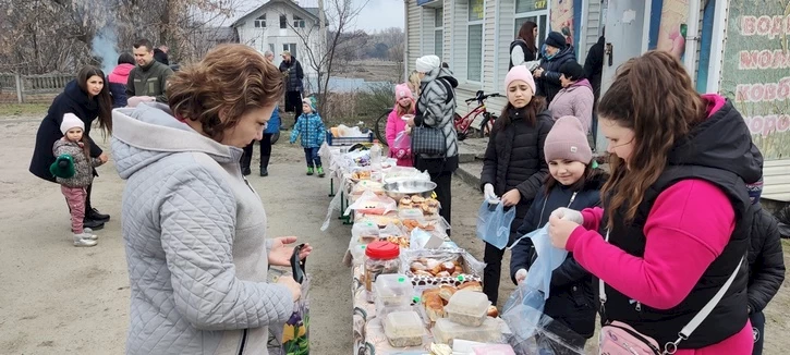 В этот же день состоялась благотворительная ярмарка в с. Деревянная Обуховской громады. Заботилась организацией мероприятия педагог-организатор Деревянской гимназии Васелюк Л.А., которая объединила усилия учащихся, родителей, учителей, работников гимназии и актива села на такое благородное дело. Присоединились к организации мероприятия воспитанники кружка - "Деревянские патриоты".