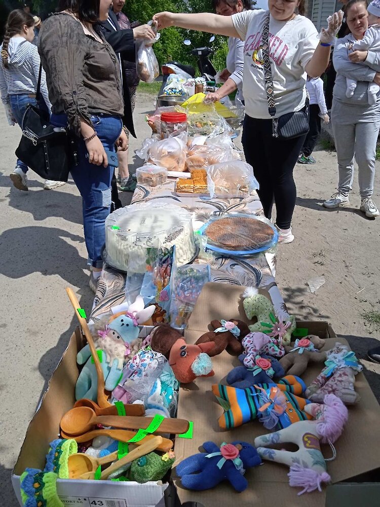 Присоединились также предприниматели, мастера и жители общины, которые пекли, плели игрушки, жарили шашлык, подвозили необходимое собственным автотранспортом.