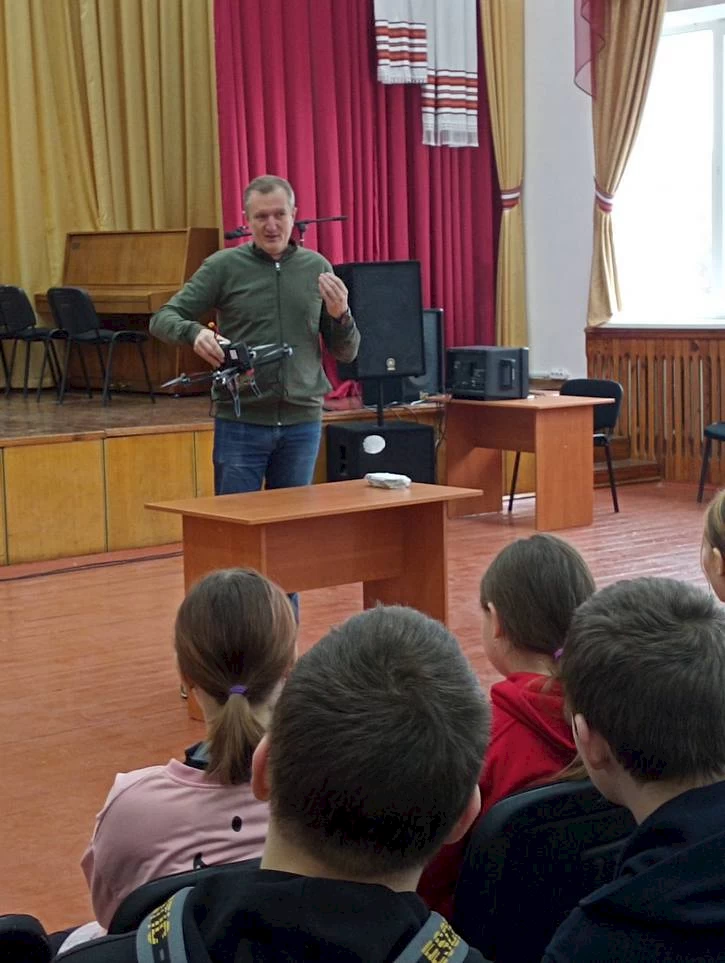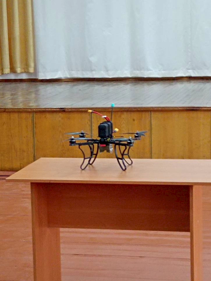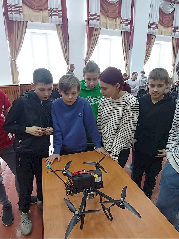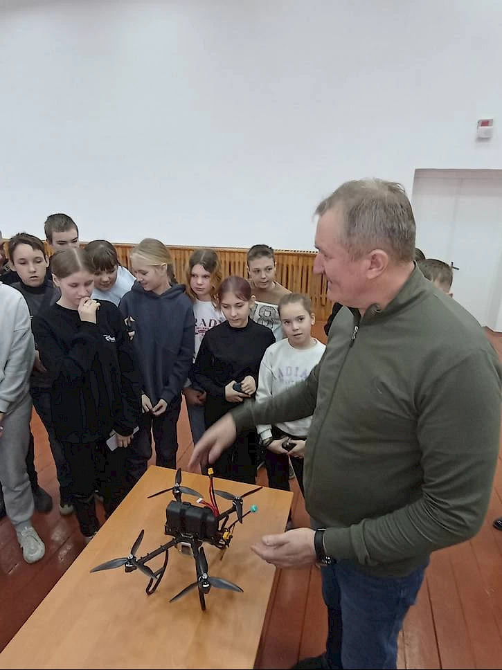 И впоследствии дети увидели результаты своей благотворительной деятельности, а именно: FPV дрон "Бомбер" многоразового назначения. Волонтер и мастер лично продемонстрировал школьникам необходимое в армии устройство.