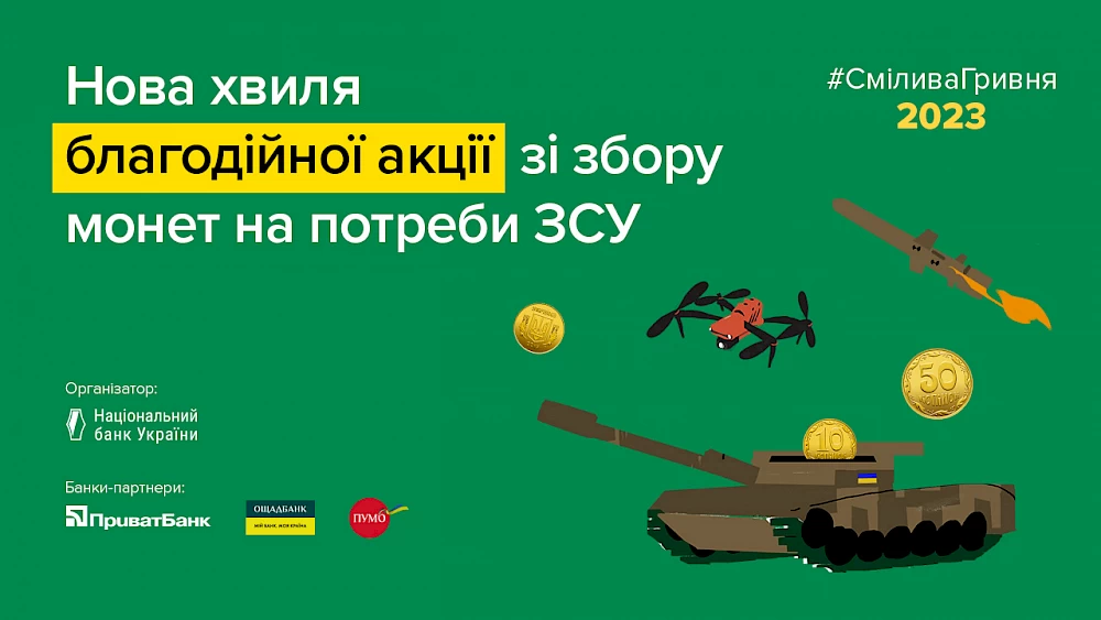 С 4 сентября по 30 ноября 2023 года по всей стране собирают монеты номиналами 10, 50 копеек и 1, 2, 5 и 10 гривен.