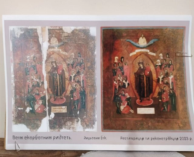 Он передал научному сотруднику Краеведческого музея Василию Трубаю икону "Всех скорбящих радость" нач. ХVIII в., которая была в плачевном состоянии. К счастью, нашелся реставратор, которая бесплатно ее отреставрировала, - говорится в сообщении.
