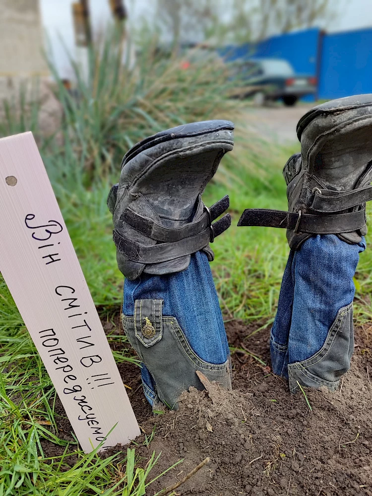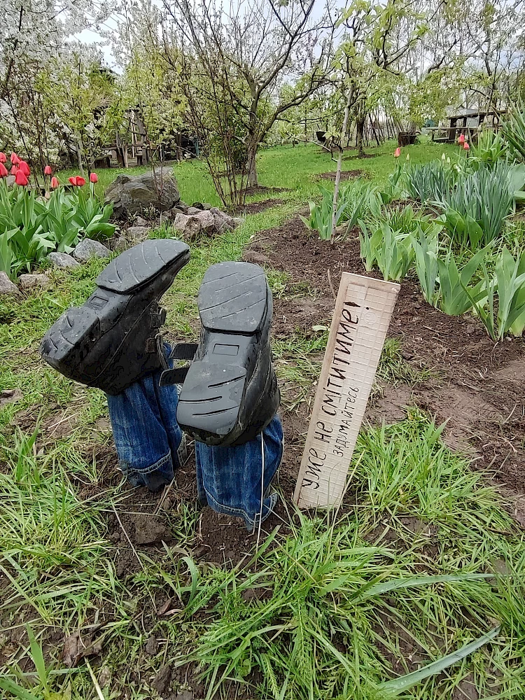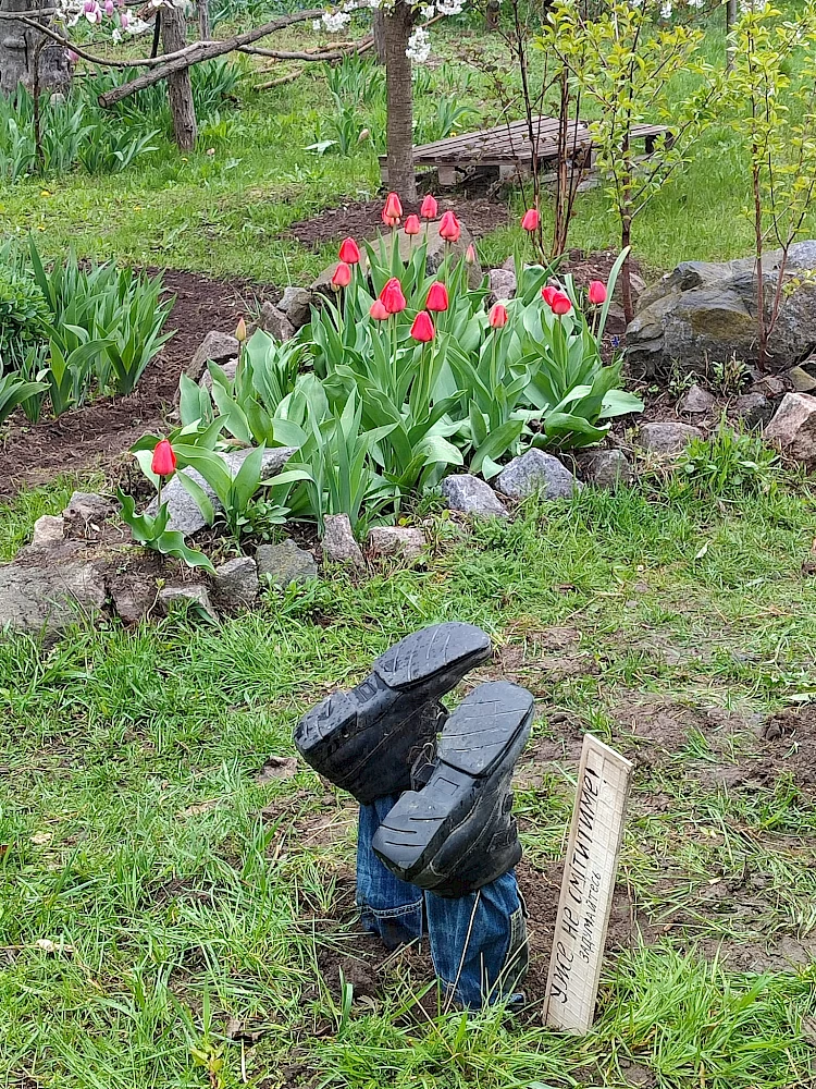 Такая идея возникла во время месячника благоустройства в селе. Люди сплотились чтобы провести весеннюю уборку, выгребали мусор и Людмила решила использовать вещи, которые нашла дома для интересной поделки.