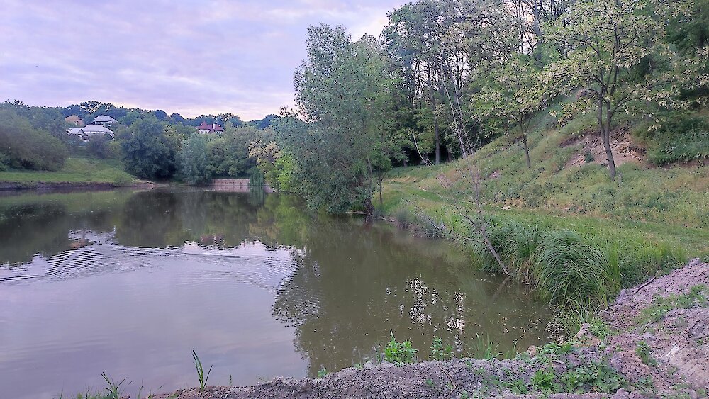 Евген уже собственноручно укрепил дамбу бетоном, собрал весь мусор, набросанный в водоем и запустил рыбу. Также, на днях завез известь для внесения в пруд.