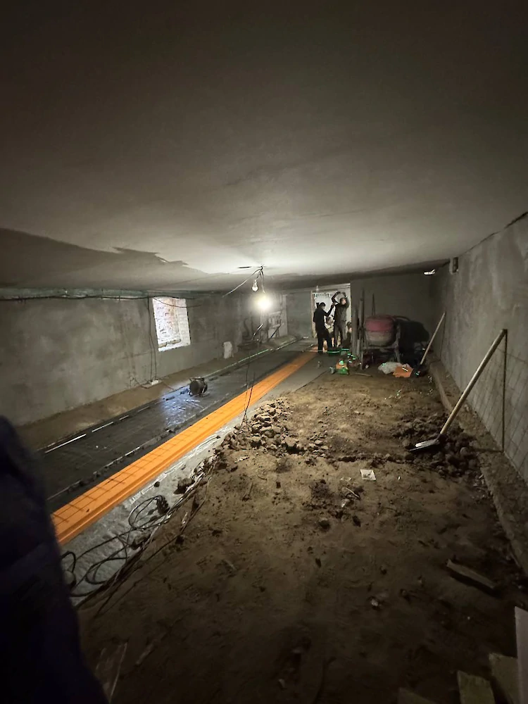 Все "черновые" работы сейчас уже завершены, строители переходят к финишной отделке подвального помещения.
