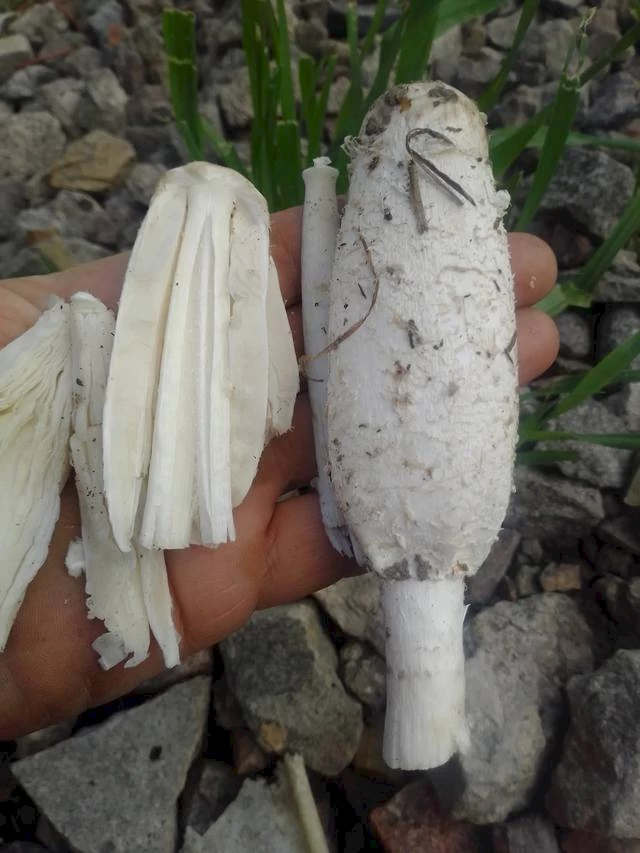 Сoprinus comatus/навозник белый, лохматый. Съедобен пока белые пластинки. После сбора необходимо сразу готовить потому что он быстро темнеет, - комментирует Анатолий Ковальский.