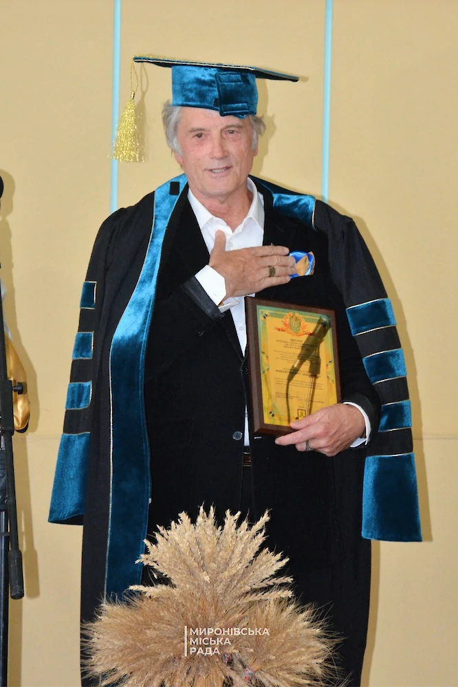 Директор института Александр Демидов вручил почетному гостю Виктору Ющенко Диплом почетного Доктора Мироновского института пшеницы имени В.М. Ремесла НААНУ.