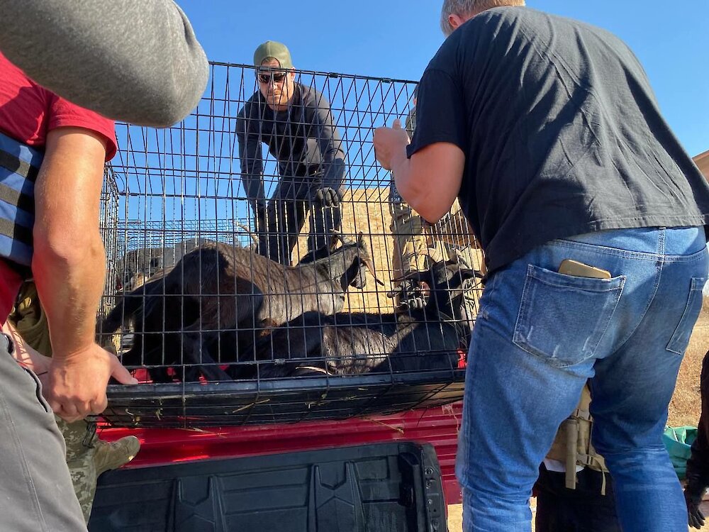 После деоккупации правобережной Херсонщины (11 ноября 2022 года) семья Белозоренко еще почти год оставались дома. Елена и Валентин долгое время даже не думали куда-то переезжать, потому что куда денешься с таким "прицепом" - кучей животных. Кроме коз у них были еще и коты и собаки, которых супругам приносили те, кто уезжал из родного дома.
