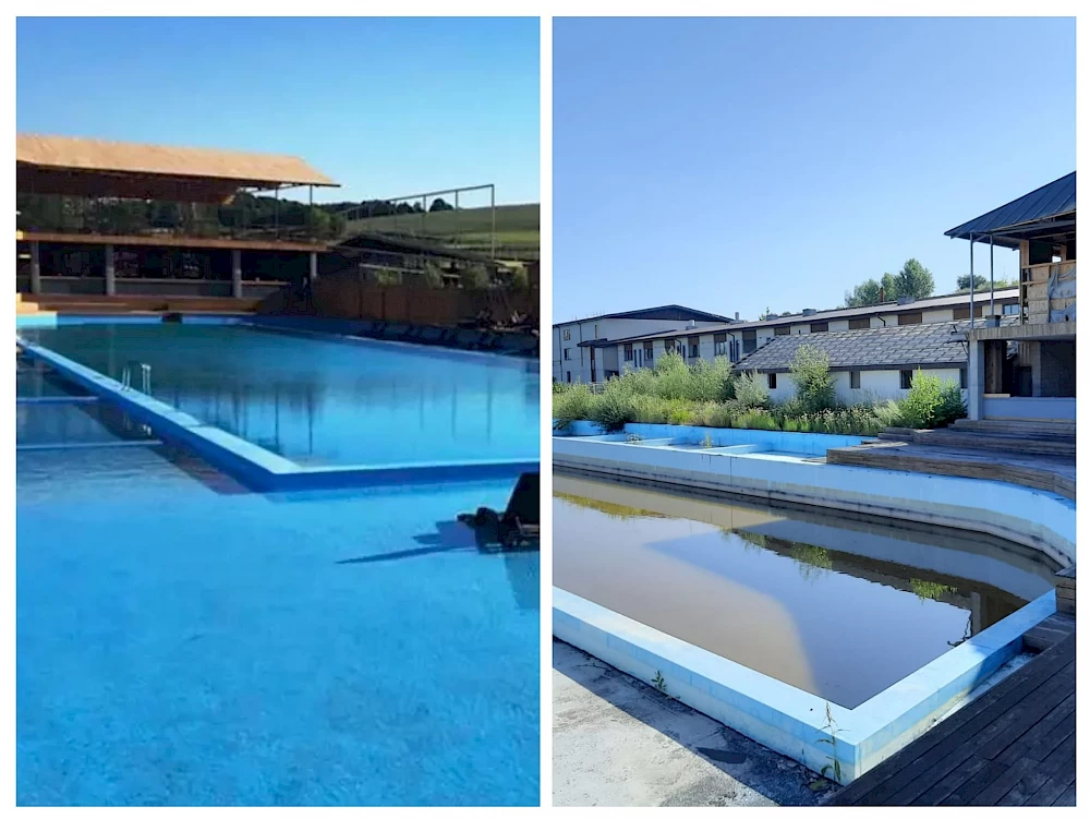 Гордостью комплекса были снежная трасса длиной 350 метров и открытый бассейн, - рассказала она.
